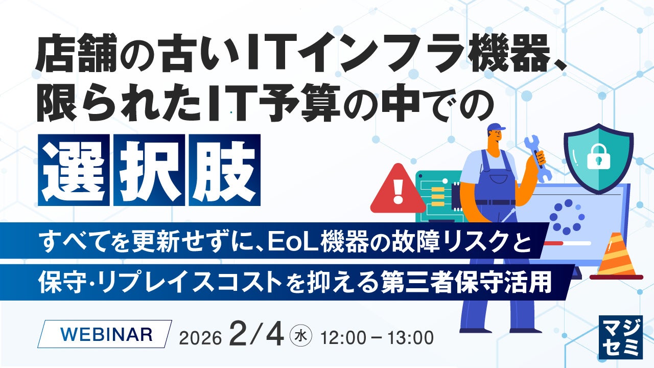 マジセミ株式会社は「店舗の古いITインフラ機器、限られたIT予算の中での選択肢」というテーマのウェビナーを開催します。