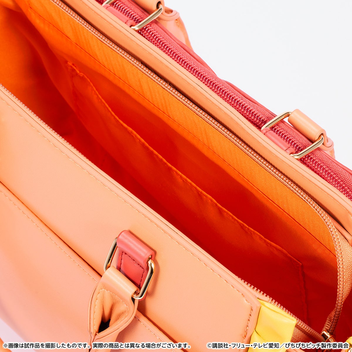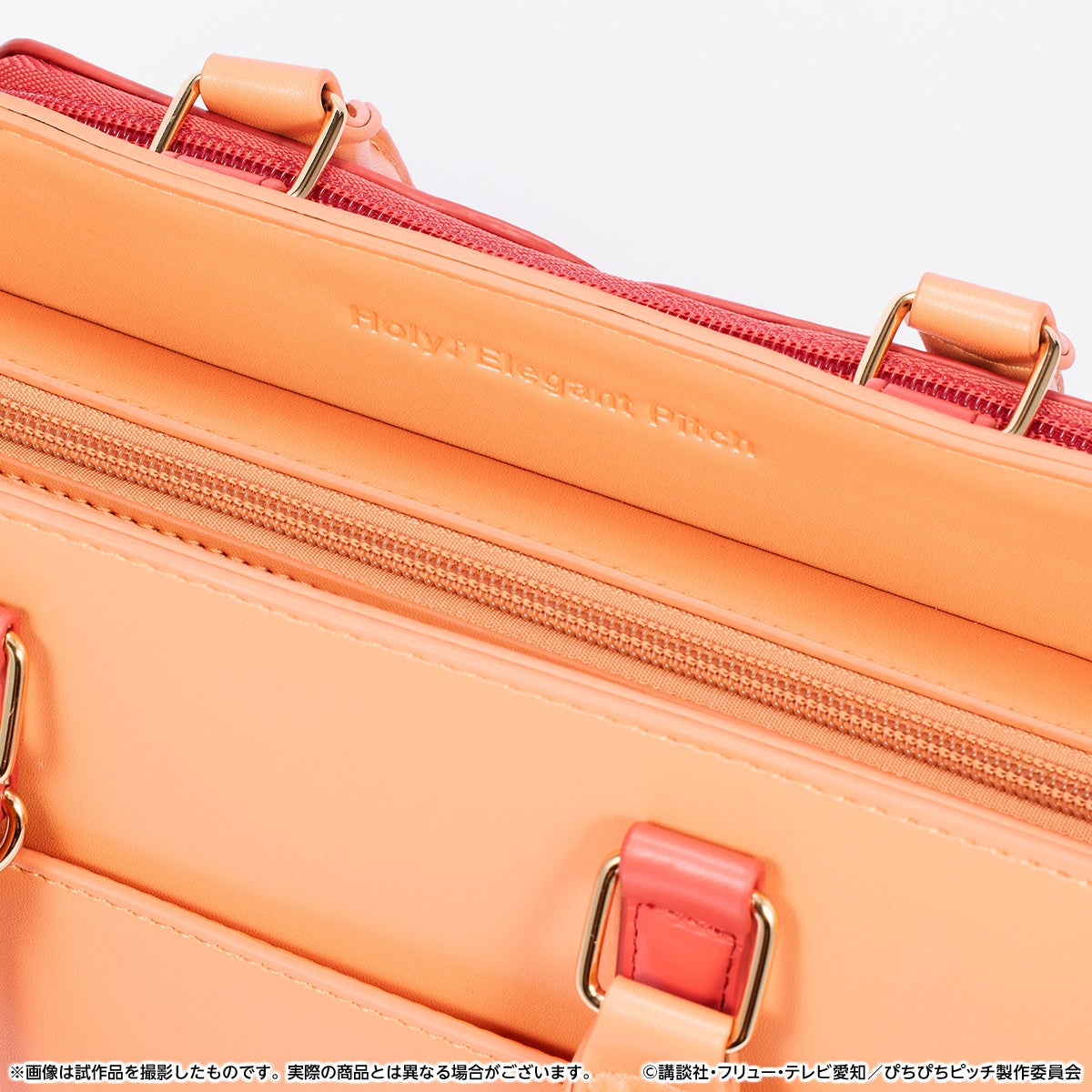 ファスナー部分にパールを付属していたり、沙羅の決めセリフである「Holy♪Elegant Pitch」がさりげなく型押しされていたりと、細かい装飾にもご注目ください。