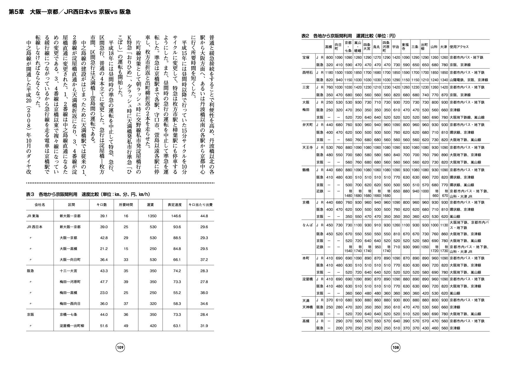 官鉄開業から京阪登場まで/新京阪の開業/昭和の初めから終戦まで/急電再開と特急の増発/新快速の登場/1992年時の京阪間の状況/各社のダイヤ/京阪間利用はどれが便利か/新快速が130㎞運転を開始/阪急、京阪はスピード競争から中間駅の利便向上に転じた