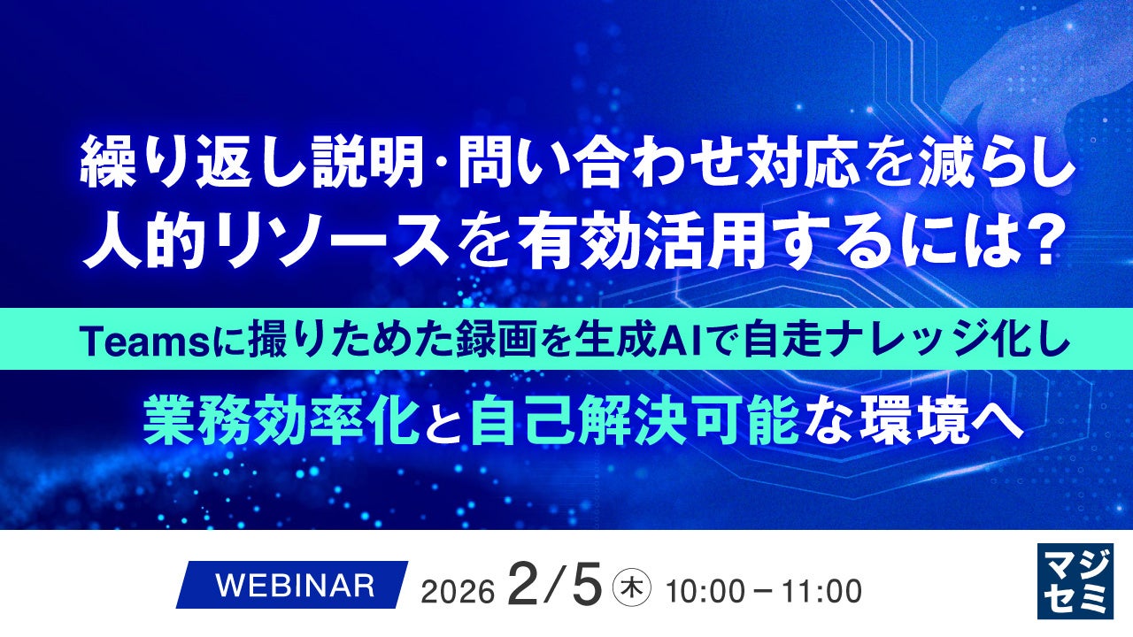 マジセミ株式会社は「繰り返し説明・問い合わせ対応を減らし、人的リソースを有効活用するには?」というテーマのウェビナーを開催します。