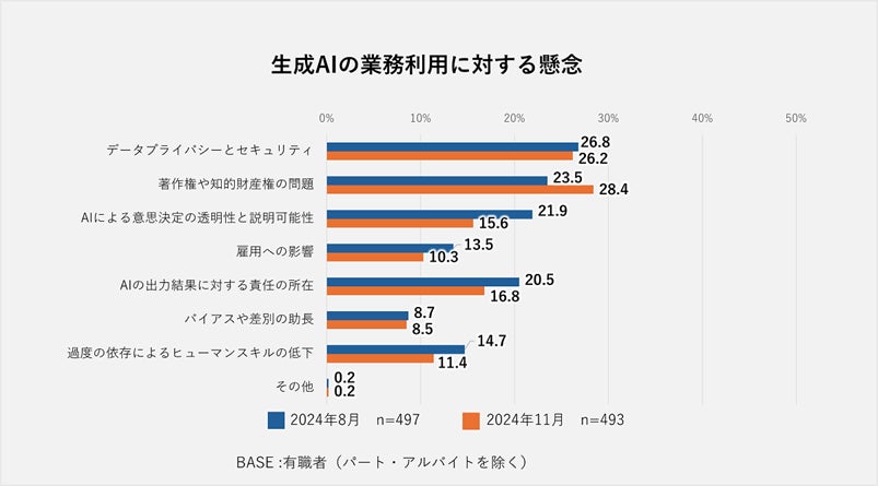 ■生成AIの業務利用に対する懸念(2024年8月と2024年11月の比較)