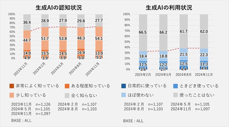■生成AIの認知と利用状況(2023年11月~2024年11月の比較)