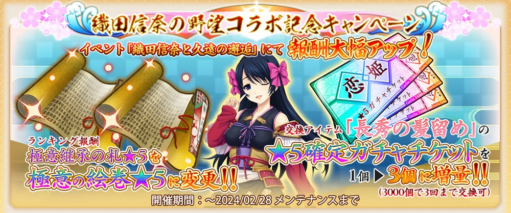コラボを記念し、コラボイベント『織田信奈と久遠の邂逅』が開催中!