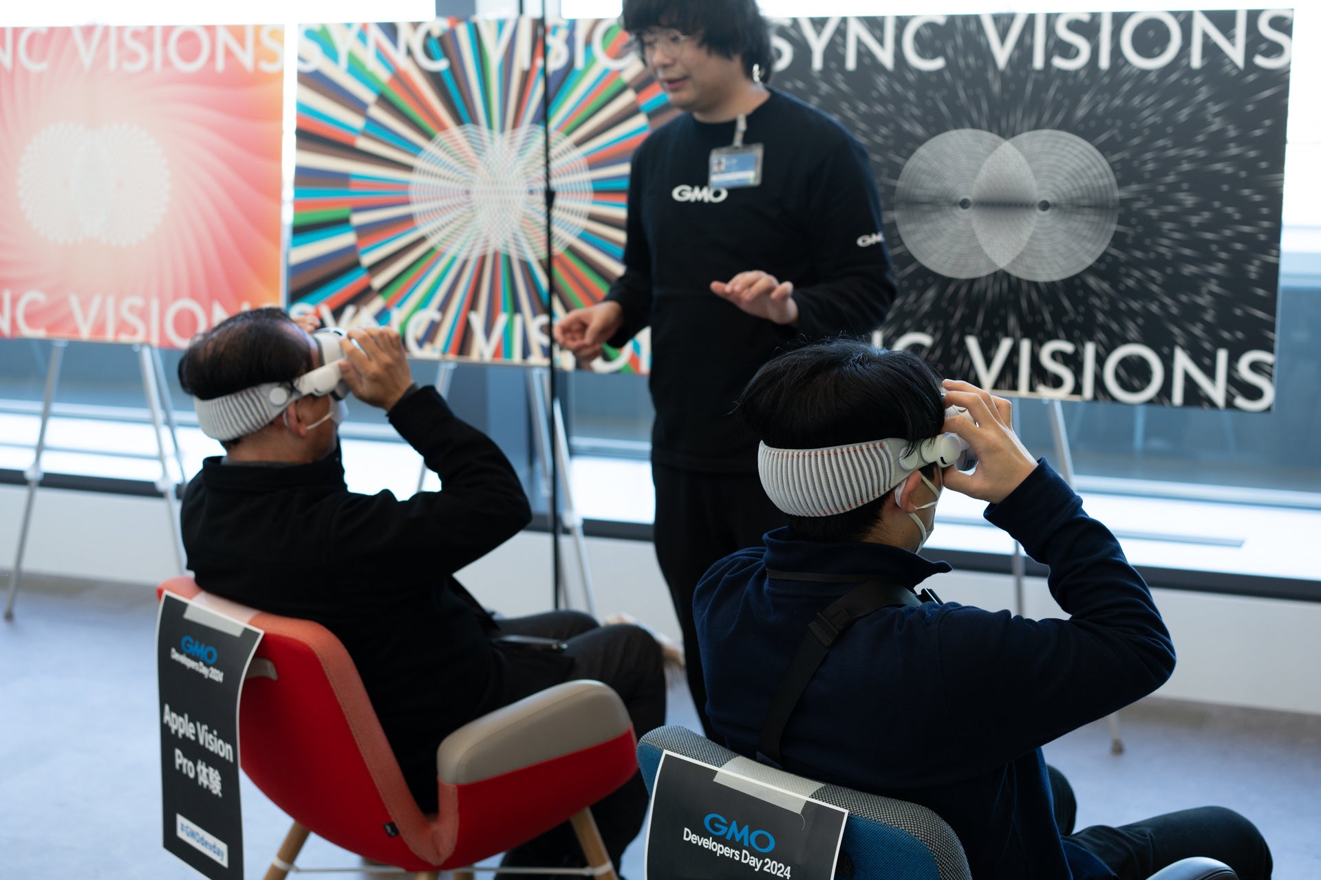 オフライン会場となった「GMOグローバルスタジオ」(東京・用賀)では、スピーカーとのラウンドテーブルやApple Vision Proを使用した未来都市体験、豪華景品が当たる抽選会など、来場者限定の特典を多数ご用意しました。全セッション終了後の懇親会では、参加者同士のつながりも生まれ、貴重なネットワーキングの場となりました。
