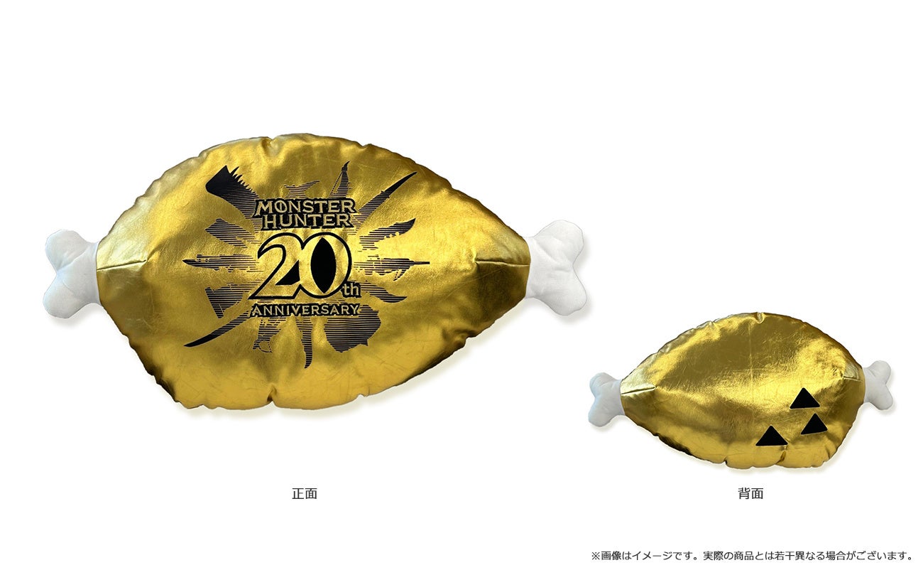 「モンスターハンター」シリーズ20周年を記念して、おなじみの「こんがり肉」がまばゆいばかりに金色に輝く「金(こん)がり肉」クッションになりました! 20周年の記念にぜひお求めください!