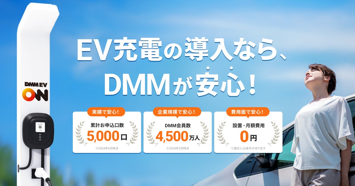 DMMは、2023年5月より全国の商業施設や宿泊施設、公共施設等に対してEV充電サービスを提供する「DMM EV CHARGE」を開始し、事業者およびEVユーザー双方にとって便利で身近なEV充電サービスを提供してまいりました。