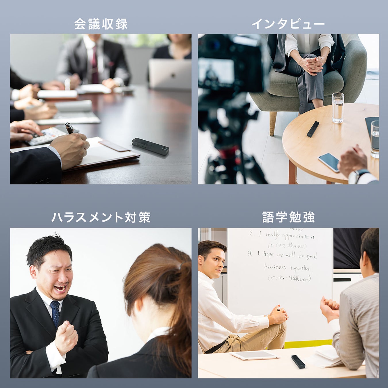 会議収録、大学の講義、講演、語学勉強、インタビュー、ハラスメント対策など様々な場面で活用可能です。