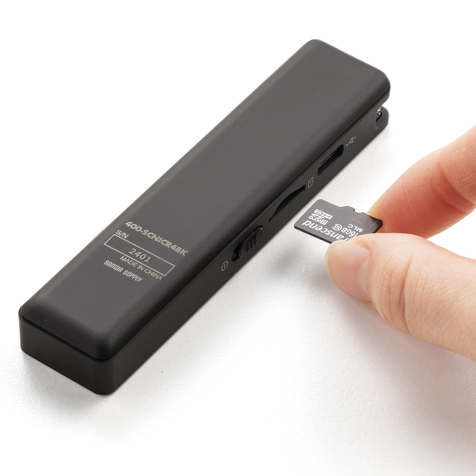 本体に8GBメモリを内蔵し、最大50時間の録音が可能です。(※録音音質:NCの場合)最大64GBまでのmicroSDカード(別売り)への保存も可能で、最大420時間(※64GBの場合)録音も可能です。
