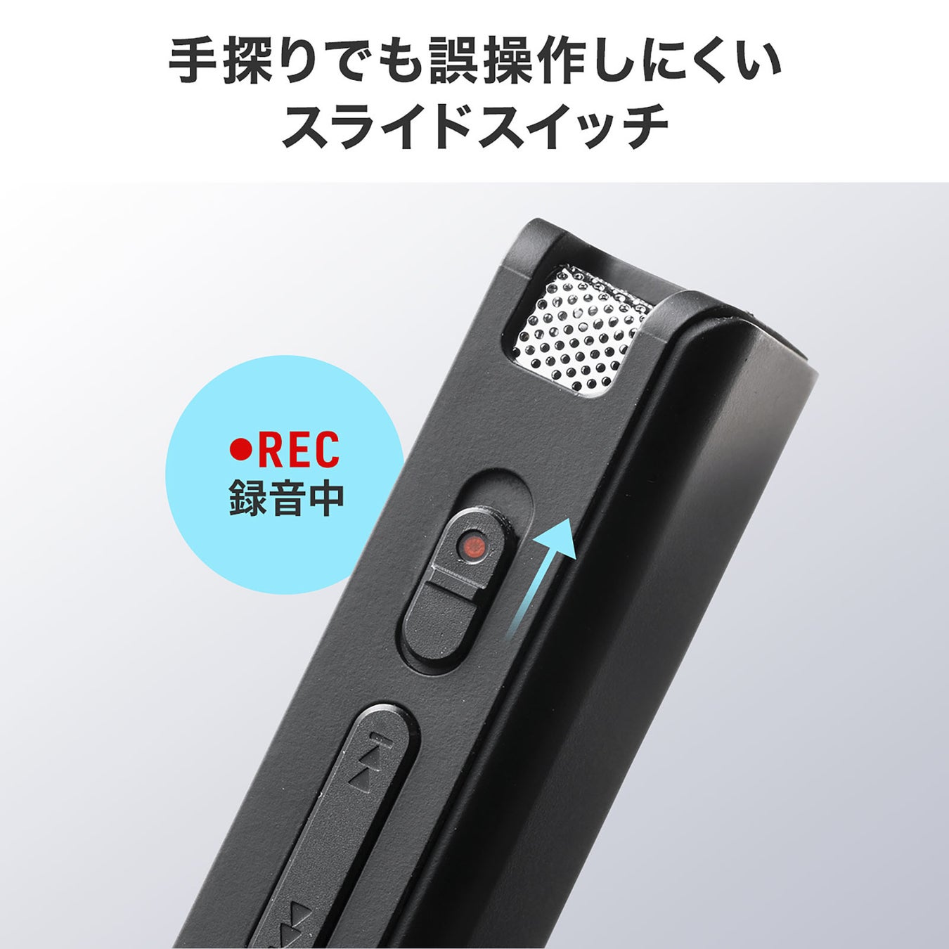 録音ボタンがスライドスイッチになり、誤操作の防止と録音状況が一目で分かります。
