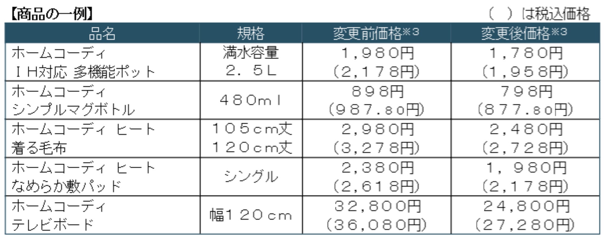 物価上昇で日常生活における節約志向が高まっている中、変化するお客さまニーズに迅速に対応するため、ホームコーディから、毎日のくらしをもっと便利に、快適にする商品などを中心に厳選26品目)※2をお値打ち価格で提供します。