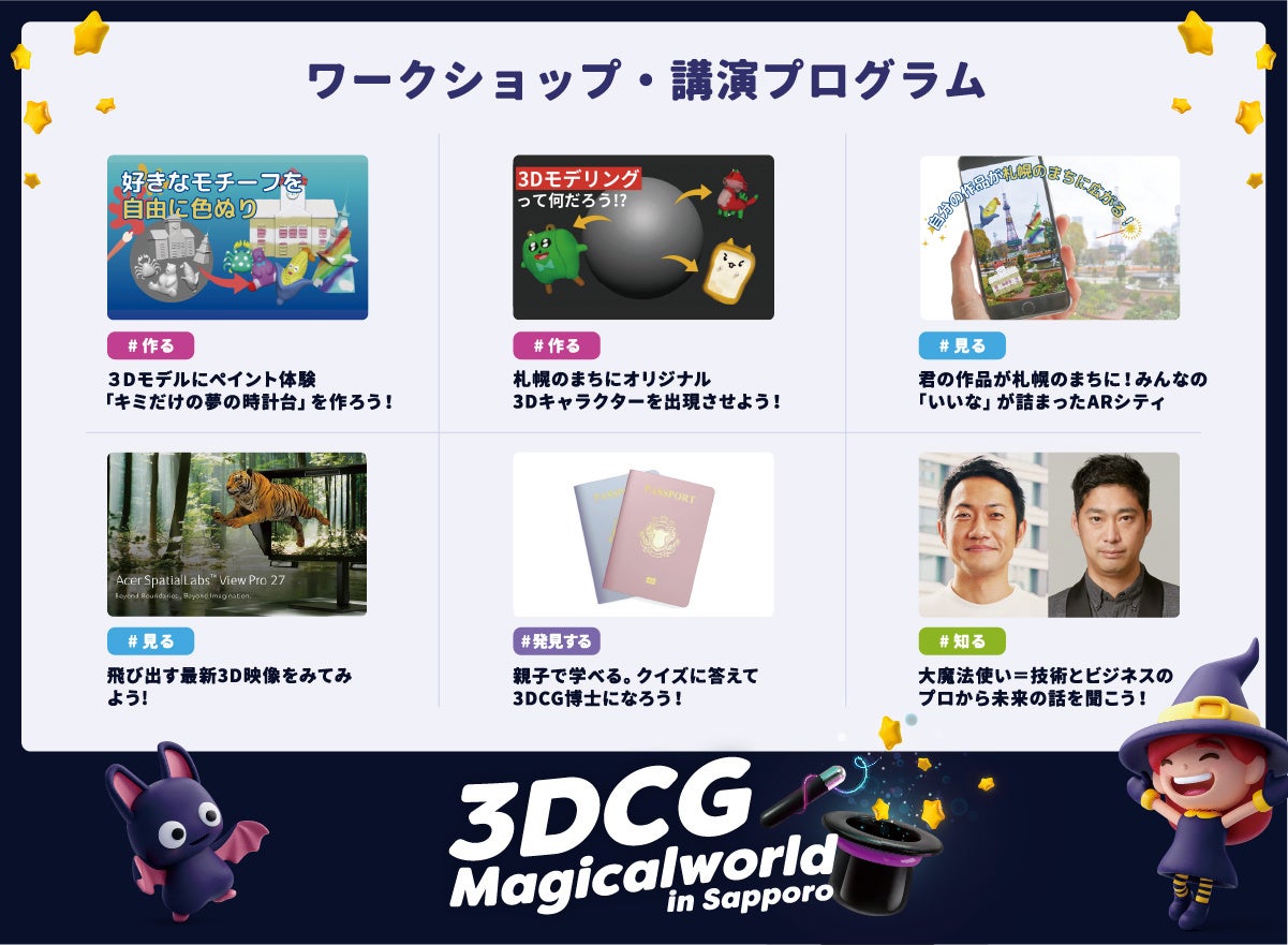 合同会社DMM.com(本社:東京都港区、会長兼 CEO 亀山敬司、https://dmm-corp.com/ 以下DMM)は地方創生事業(DMM 地方創生)において、(一財)さっぽろ産業振興財団の「子どもを対象とした3DCGワークショップ事業企画運営業務」を受託し、人口減少による将来的な人材不足を解消するため、子どもや学生が映像に親しむ機会を提供し、映像業界を目指す人材を増やすための子どもを対象とした制作ワークショップ「3DCG Magicalworld in Sapporo」を企画し、参加者を募集開始致しました。
