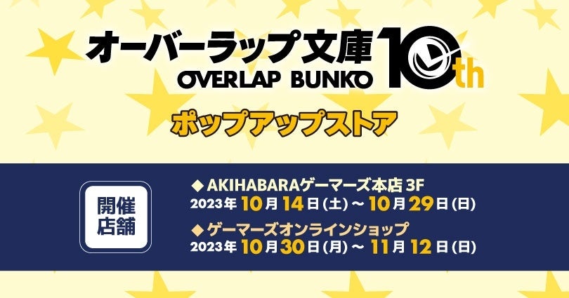 『オーバーラップ文庫10周年記念』ポップアップストアを2023年10月14日(土)よりゲーマーズにて開催致します!