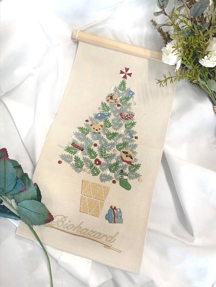 「バイオハザード」シリーズより、優しいグレイッシュカラーの繊細な刺繍があしらわれたクリスマスタペストリーが新発売!