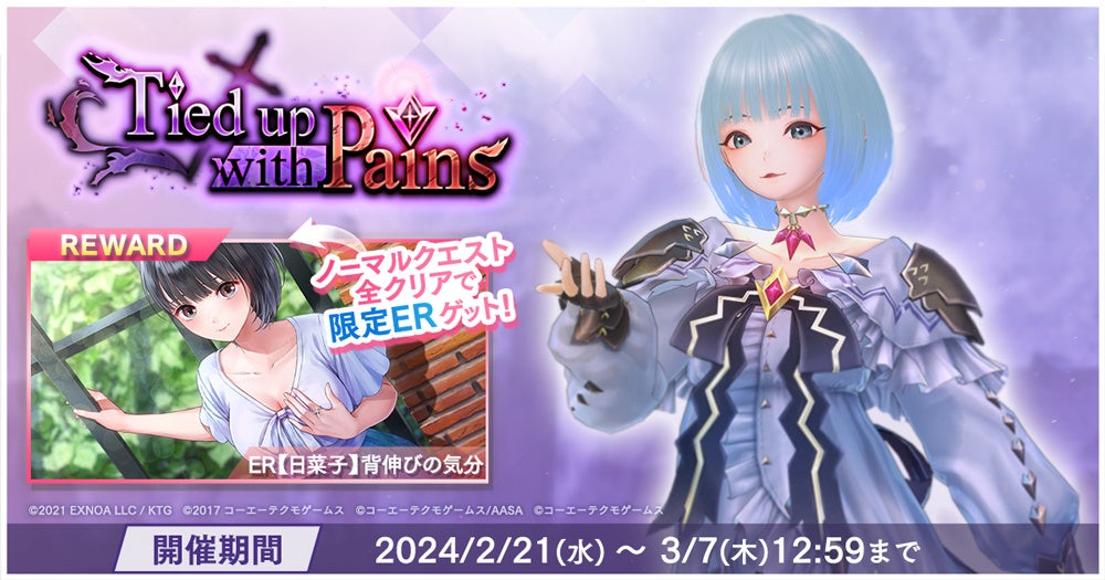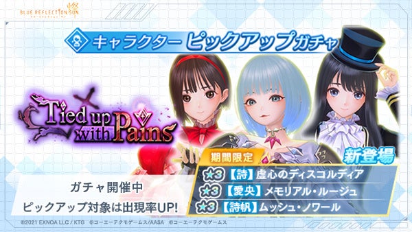 合同会社EXNOA(本社:東京都港区、CEO:村中 悠介、URL:https://games.dmm.com)が運営するDMM GAMESは、スマートフォン/PC向けヒロイックRPG『BLUE REFLECTION SUN/燦』にて、リリース1周年を記念したアニバーサリーイベント「Tied up with Pains」の開催をお知らせいたします。