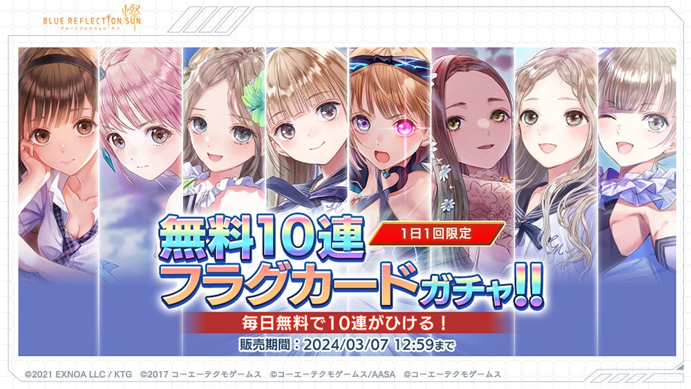 期間中は毎日1回10連フラグカードガチャを無料で引くことができます!最大160連、この機会に所持していないフラグカードを手に入れましょう!