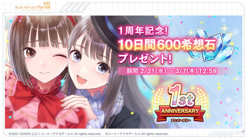 『BLUE REFLECTION SUN/燦』は、プレイしていただいている皆様のおかげで、このたび無事に1周年を迎えることができました。この1年間の感謝をこめて、各種キャンペーンを実施いたします。