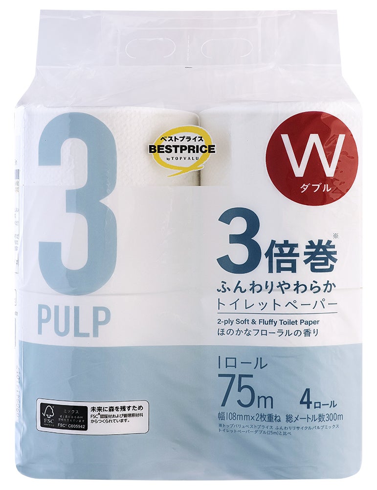 商品名:トップバリュベストプライス“ふんわりやわらかトイレットペーパー 3倍巻”