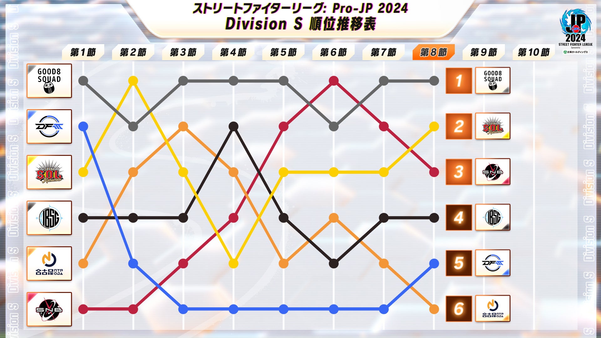 順位推移表(Division S 第8節 終了時点)