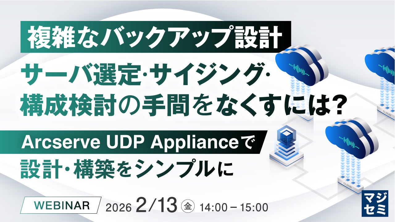 マジセミ株式会社は「複雑なバックアップ設計、サーバ選定・サイジング・構成検討の手間をなくすには?」というテーマのウェビナーを開催します。