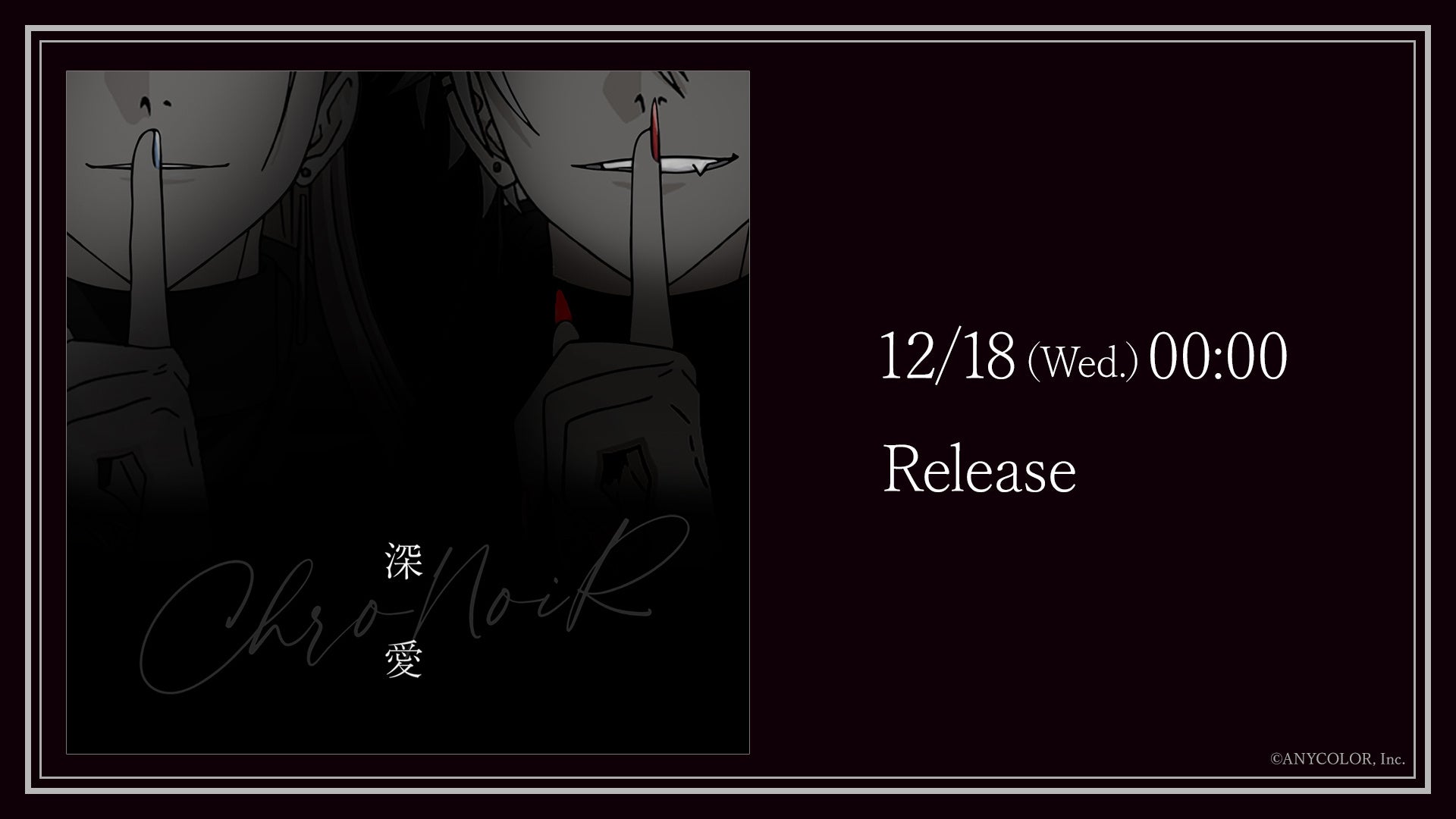 2025年3月5日(水)に、ChroNoiRの1stミニアルバム『Promise』が発売されることにあたり、その収録曲から、「深愛」を2024年12月18日(水)に先行配信、またMusic Videoを同日0時よりChroNoiR公式YouTubeチャンネルで公開することが決定しました。