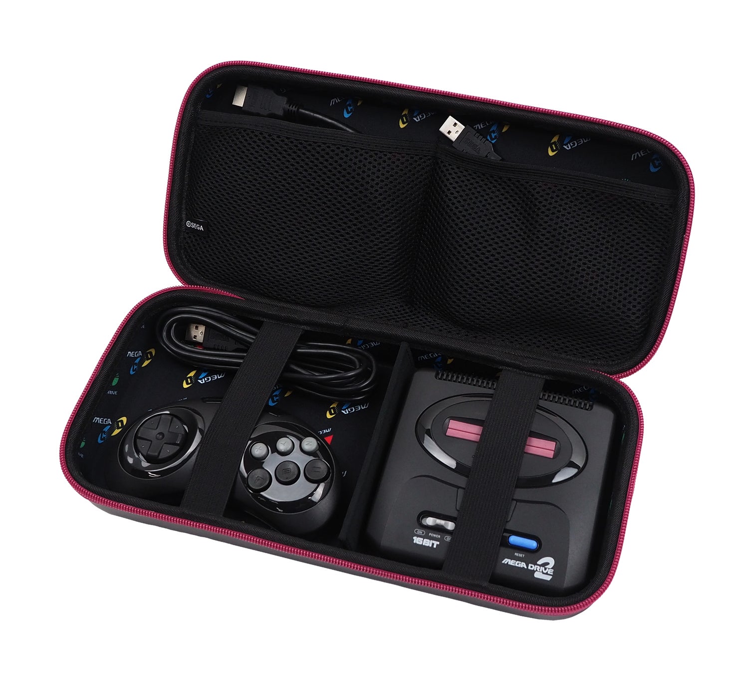 『メガドライブミニ2』本体とケーブル類、さらに『ファイティングパッド6B』を入れることも可能なキャリングケースが登場。
