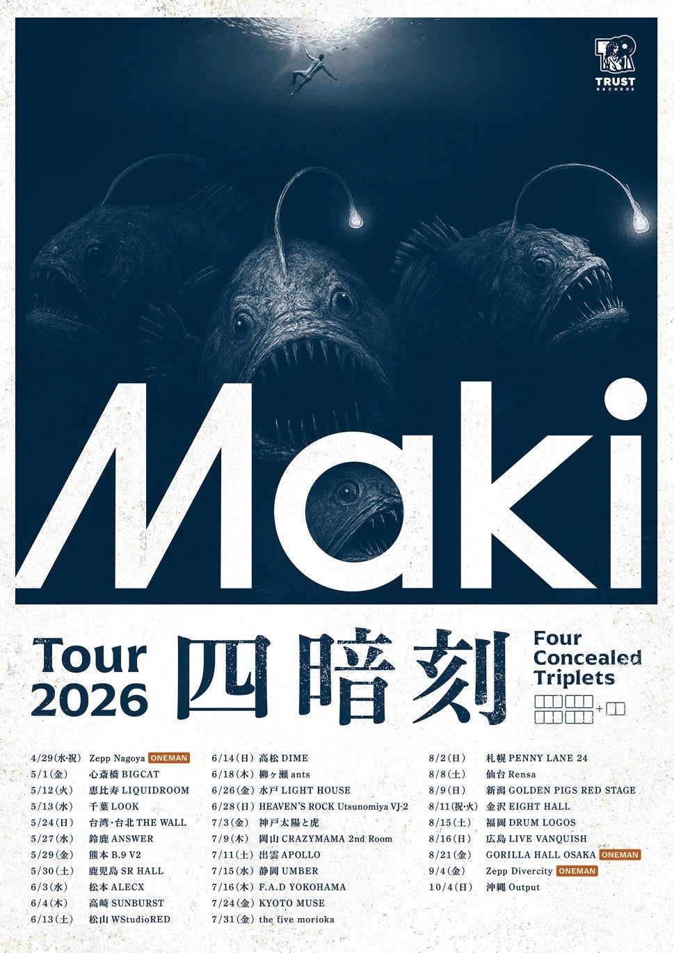 同作を携え、4月29日のZepp Nagoyaを皮切りに10月4日沖縄 Outputまで全国31公演となる過去最大規模の全国ツアー『Maki Tour 2026「四暗刻」』を開催。