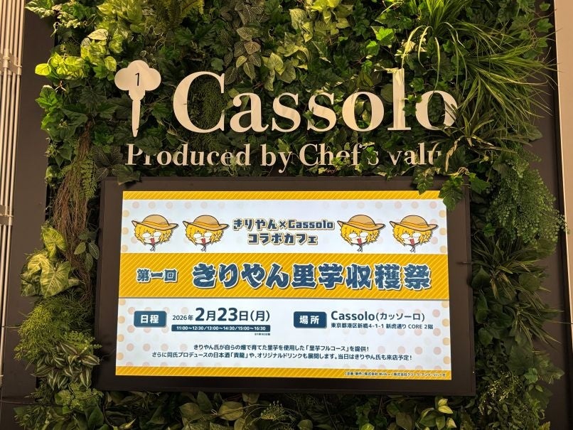 株式会社クリーク・アンド・リバー社(以下C&R社)の食分野の子会社株式会社Chef’s valueが運営するレストラン「Cassolo」(読み:カッソーロ)は、2月23日(月)、ゲーム実況者きりやん氏との1日限定コラボカフェ「第1回きりやん里芋収穫祭」を開催いたしました。