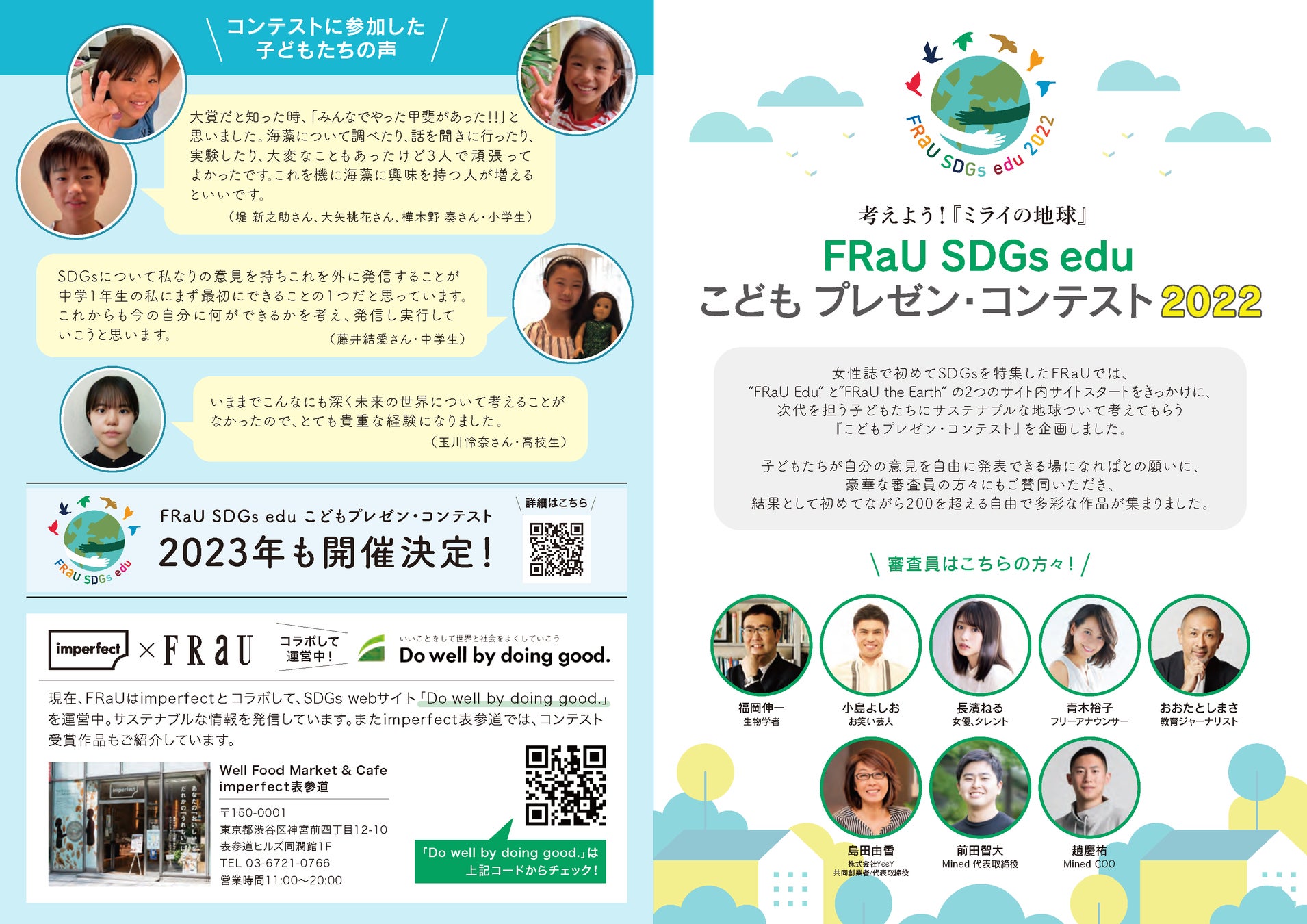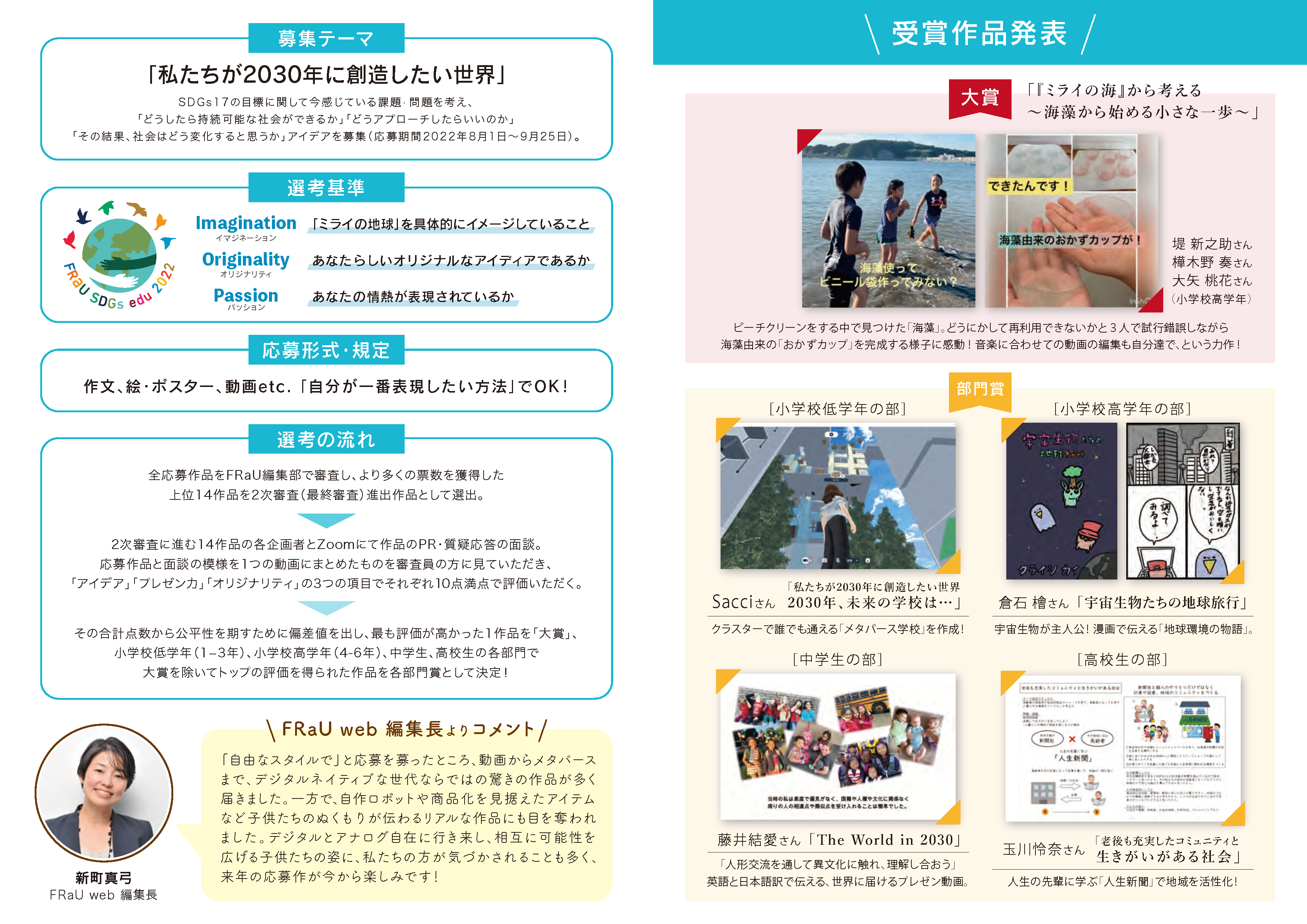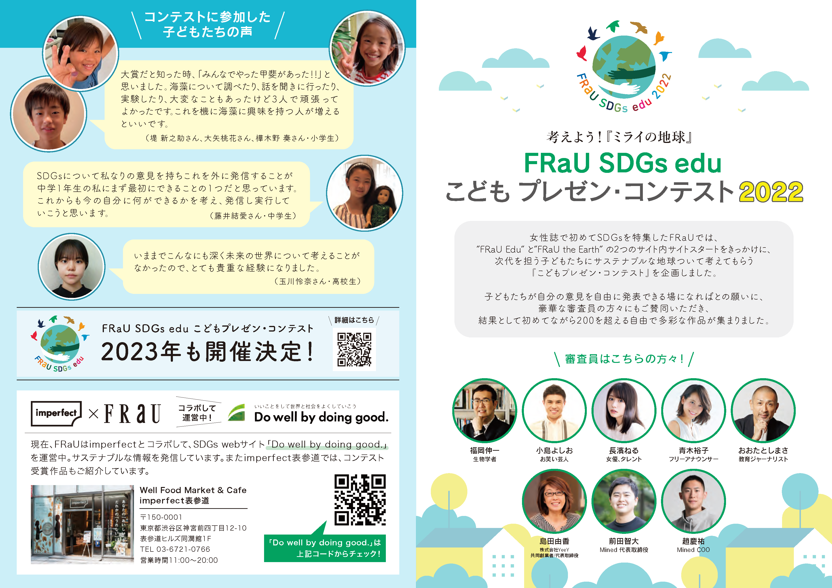 「FRaU SDGs eduこども プレゼン・コンテスト」の受賞作を発表! 受賞作は期間限定で表参道で紹介 長濱ねる、小島よしおのコメントも