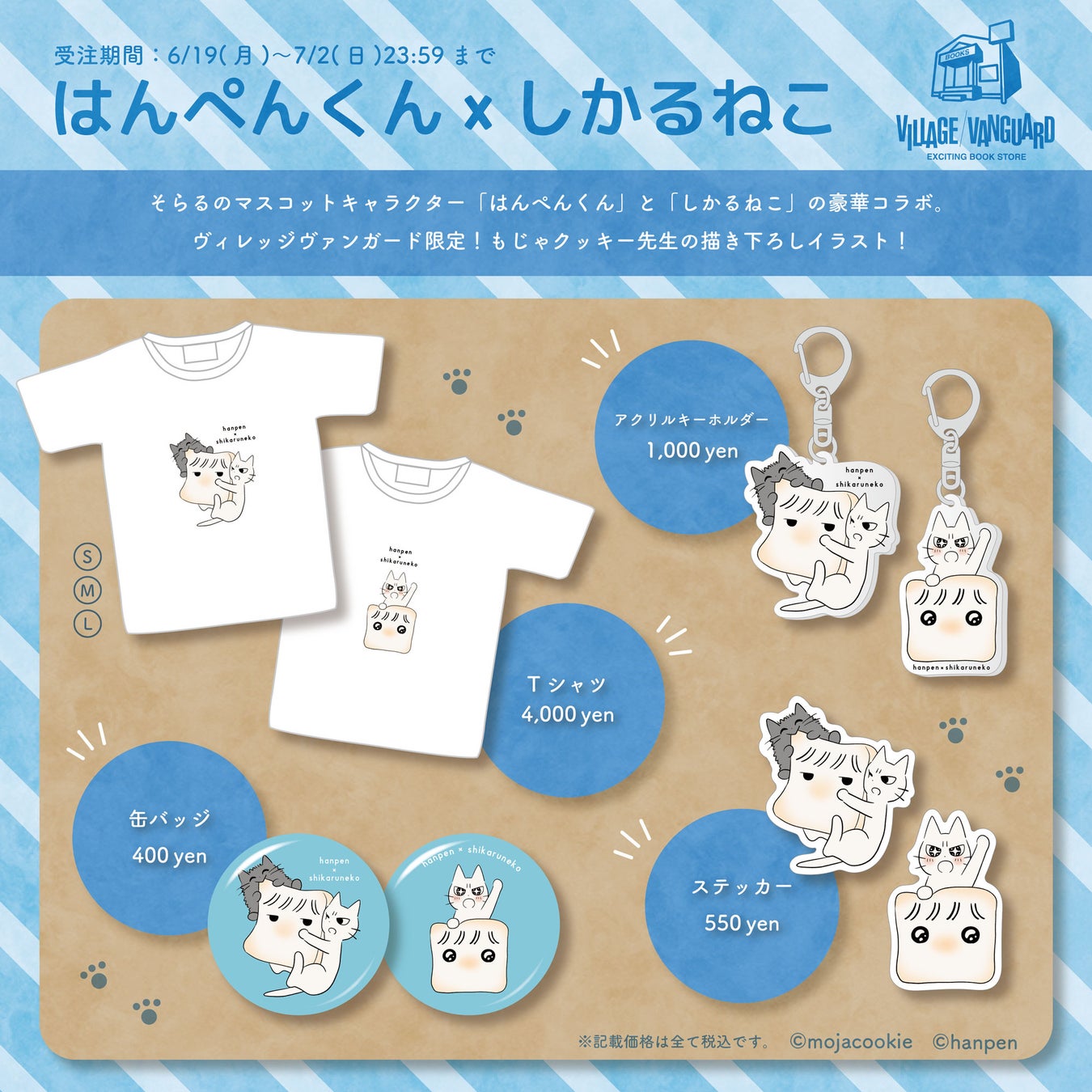 2023年6月19日(月)より、今巷で話題の謎のゆるキャラ【はんぺんくん】と大人気イラストレーター【もじゃクッキー】による【しかるねこ】の超豪華コラボグッズがヴィレッジヴァンガードオンラインストアにて発売決定!!