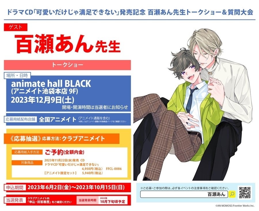 ドラマCD制作秘話なども聞くことができる百瀬あん先生のトークイベントも開催が決定しています!