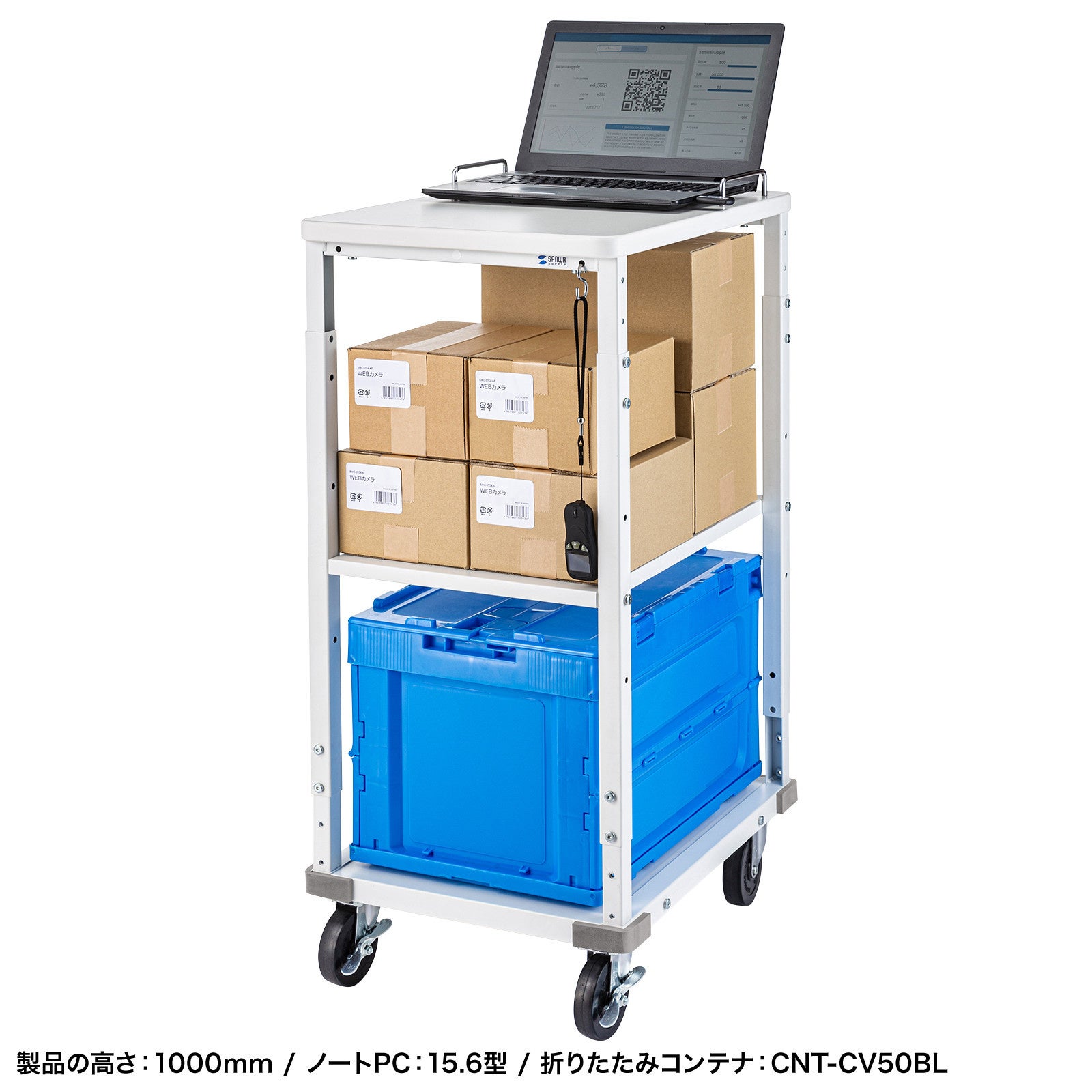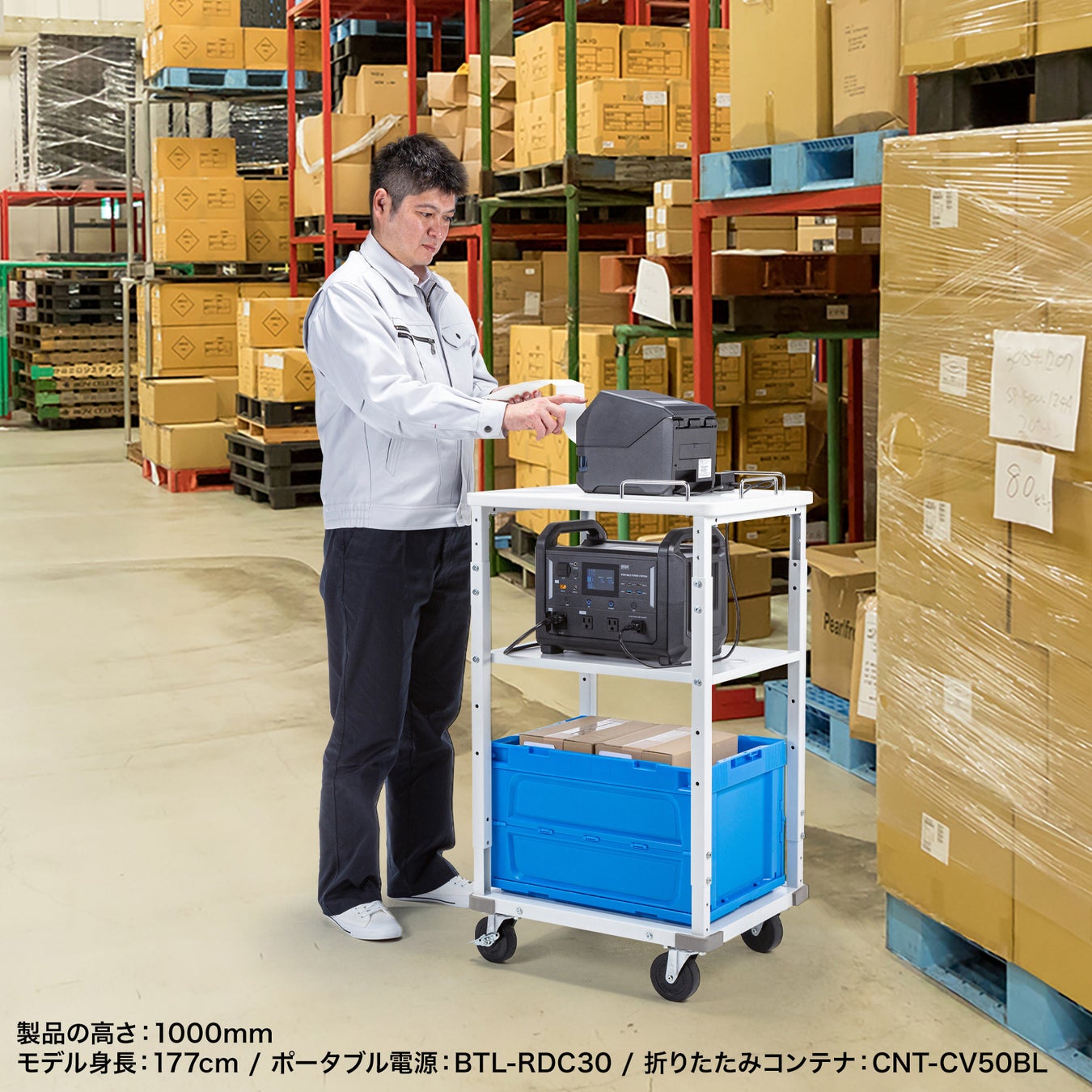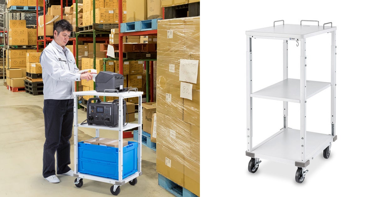 プリンターと一緒にポータブル電源も搭載でき、場所を選ばずラベル発行作業ができるプリンターカートを発売