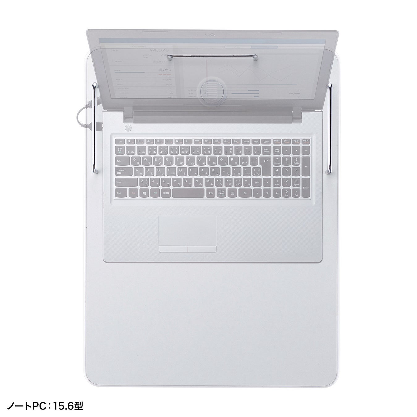 天板サイズはW450×D600mmと広めで、ノートパソコンを置いてもマウス操作やメモなどの作業スペースを確保できます。また、ハンドル部分にセキュリティワイヤーの取り付けが可能で、機器を盗難から守ります。