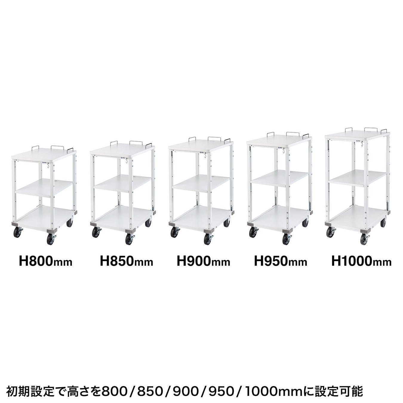 初期設定で高さを800/850/900/950/1000mmと、使用環境や使用者のちょうどいい高さに合わせることができます。