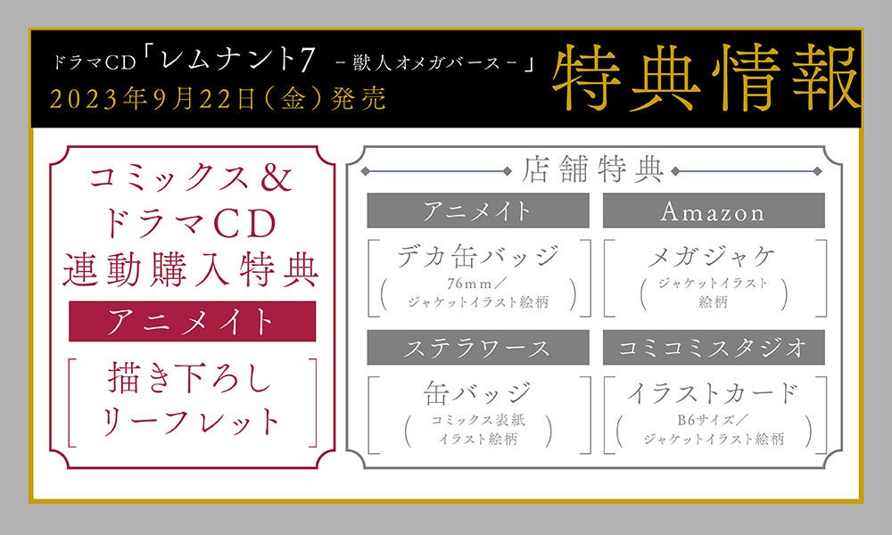 ・ドラマCD「レムナント7-獣人オメガバース-」(2023年9月22日(金)発売)
