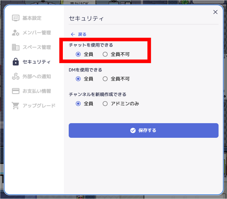 ⑵【有料限定】スペース全体でチャット機能をOFFにできるように