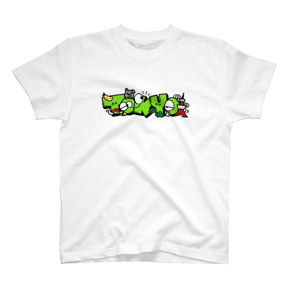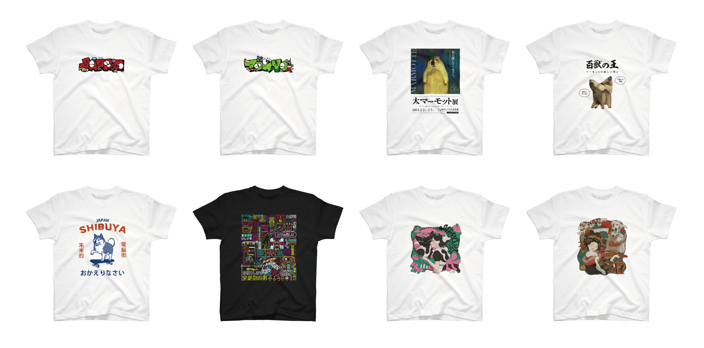 Tシャツのデザインは各クリエイター2種類ずつで、渋谷ロフト内の「LoFPri」限定デザイン6種類を含む全8種類です。限定デザインは、渋谷のお土産をテーマに制作され、国内はもちろん海外からの観光客の方々にも手に取っていただきやすいデザインとなっています。