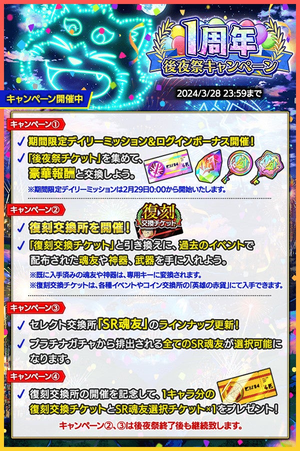 ■1周年記念後夜祭キャンペーン 開催!