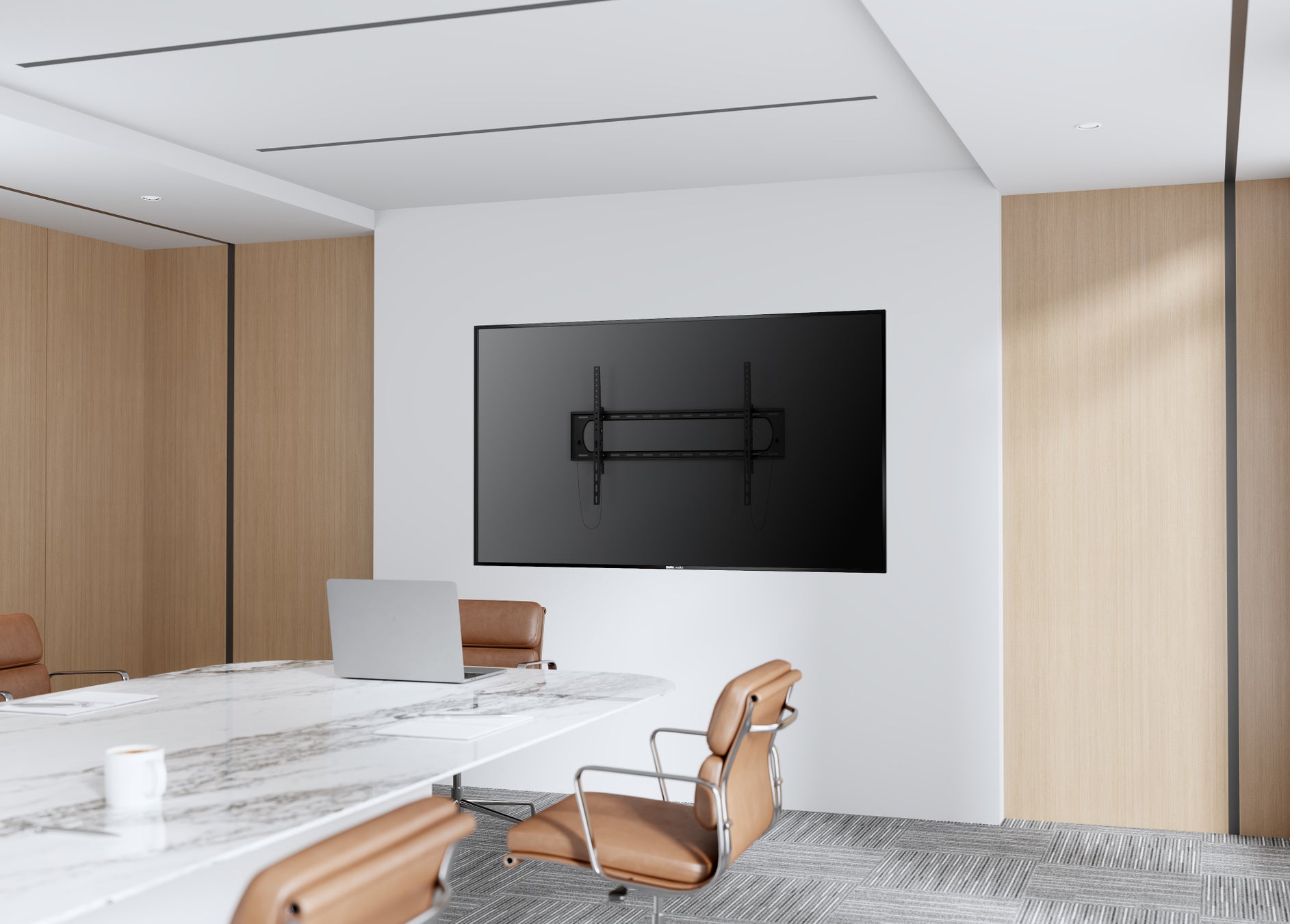大型120インチまで設置可能なスリムデザインの壁掛け金具です。チルト機構によりお好みの角度に調整可能です。