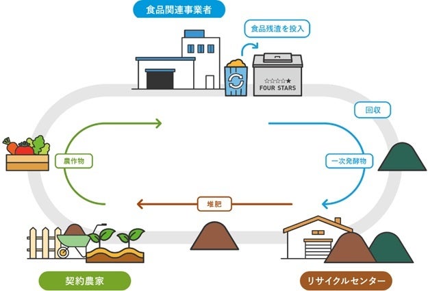 また、毎日大量に発生する野菜残渣(カットくず)は、食品残渣発酵分解装置の導入により堆肥化され、地域の食品循環型社会の実現に寄与しています。