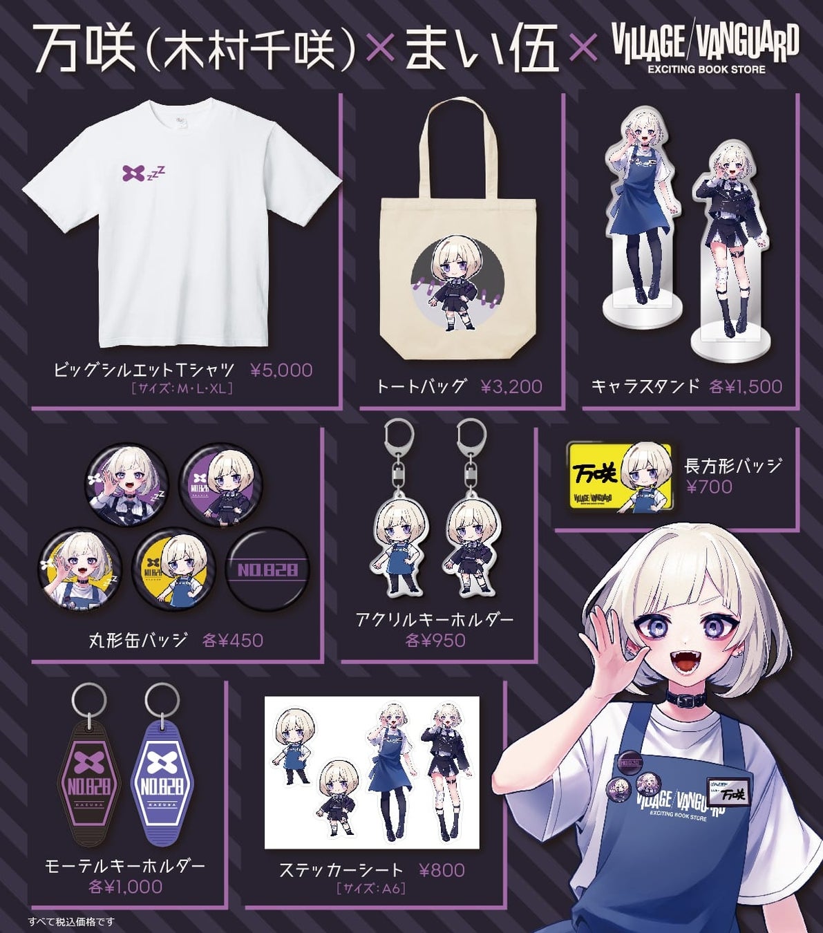 2023年6月22日(木)より、声優や音楽ユニット「群咲」のボーカル&作詞担当として活躍中の【木村千咲】とヴィレヴァンのコラボグッズが発売決定!イラストレータ【まい伍】による今回コラボの為の描き下ろしイラストを使用、Vtuberとしても活動している【万咲】のアートを使用したスペシャルなラインナップとなっております!期間限定のオンライン受注販売のみになりますのでお見逃しなく!!