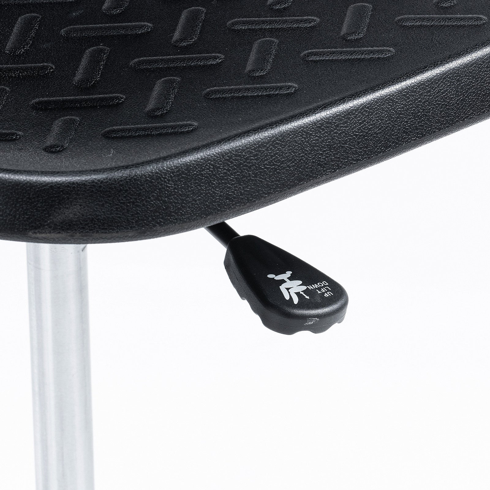 レバー1本でお好みの高さに調整できる、ガス圧リフト装置付きです。座面は最大685mmまで上がるので、スタンディングデスクや昇降デスクでの使用にもおすすめです。