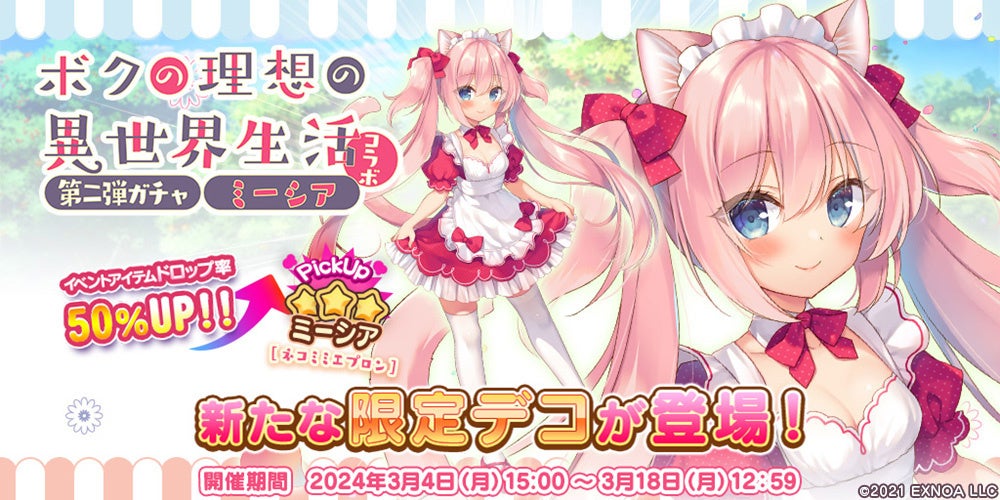 『救世少女 メシアガール おかわり』コラボイベント「ボクの理想の異世界生活」第二弾後半スタート!エプロン姿がキュートな「ミーシア」が新登場