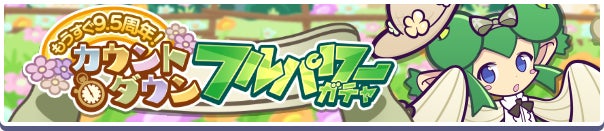 内容:★7へんしんが可能な「はなののリデル」「大精霊シルフ」が新登場する、「ガチャパワー」機能対応の「もうすぐ9.5周年!カウントダウンフルパワーガチャ」を開催します。