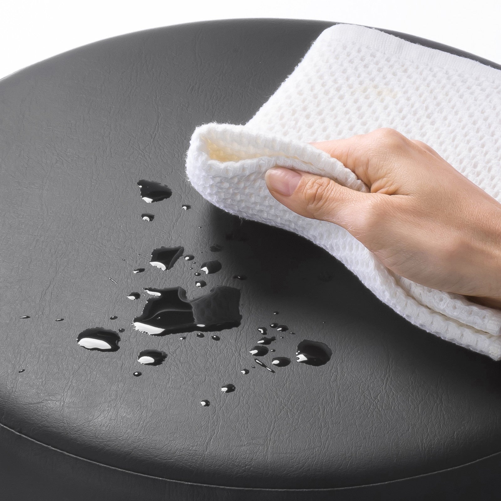 背もたれと座面は、撥水性が高くアルコール消毒にも対応したPVCレザーを採用しています。塗料などがこぼれた場合でもふきとりやすくお手入れが簡単です。