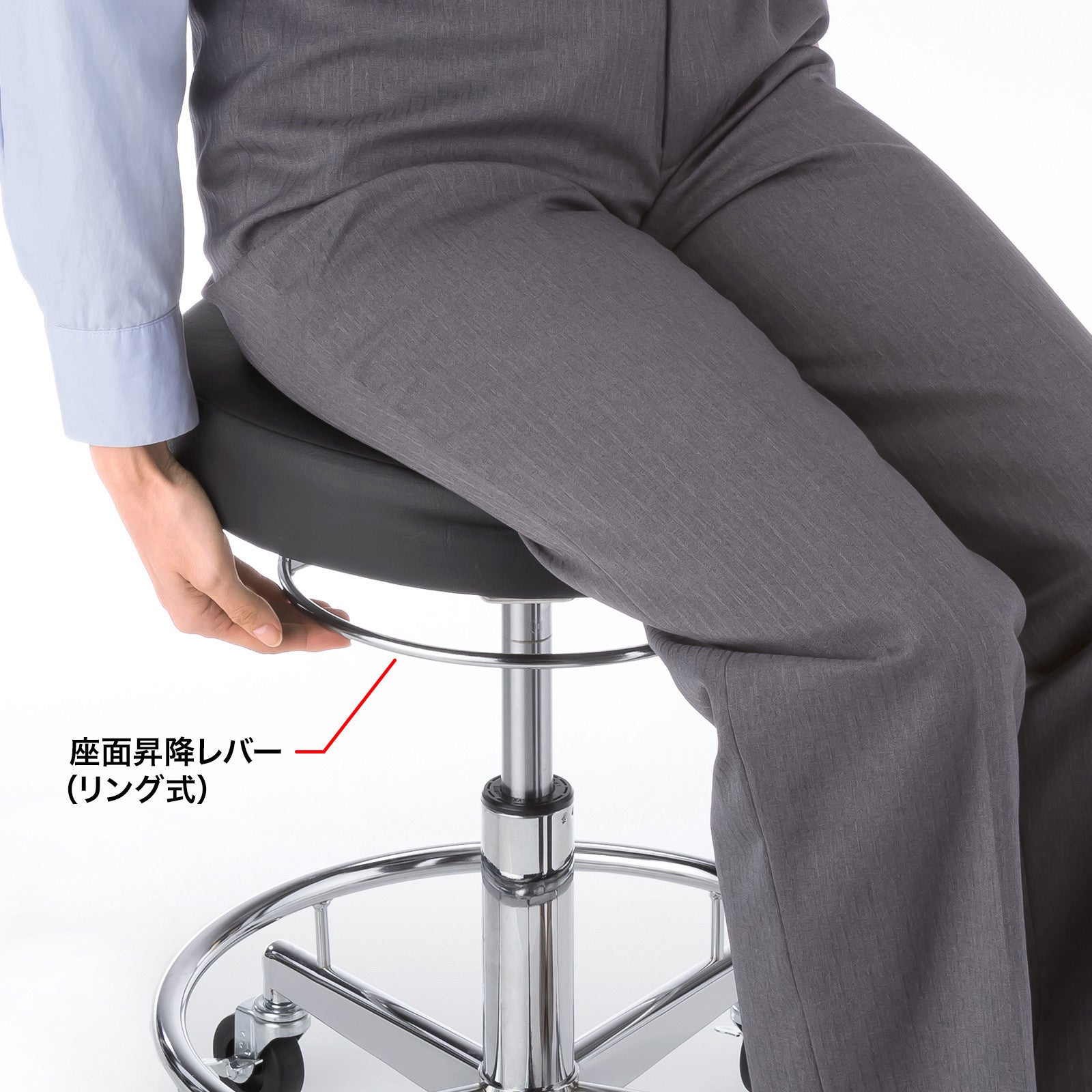 座面下のリング式座面昇降レバーを引き上げることで、高さ調整が可能です。