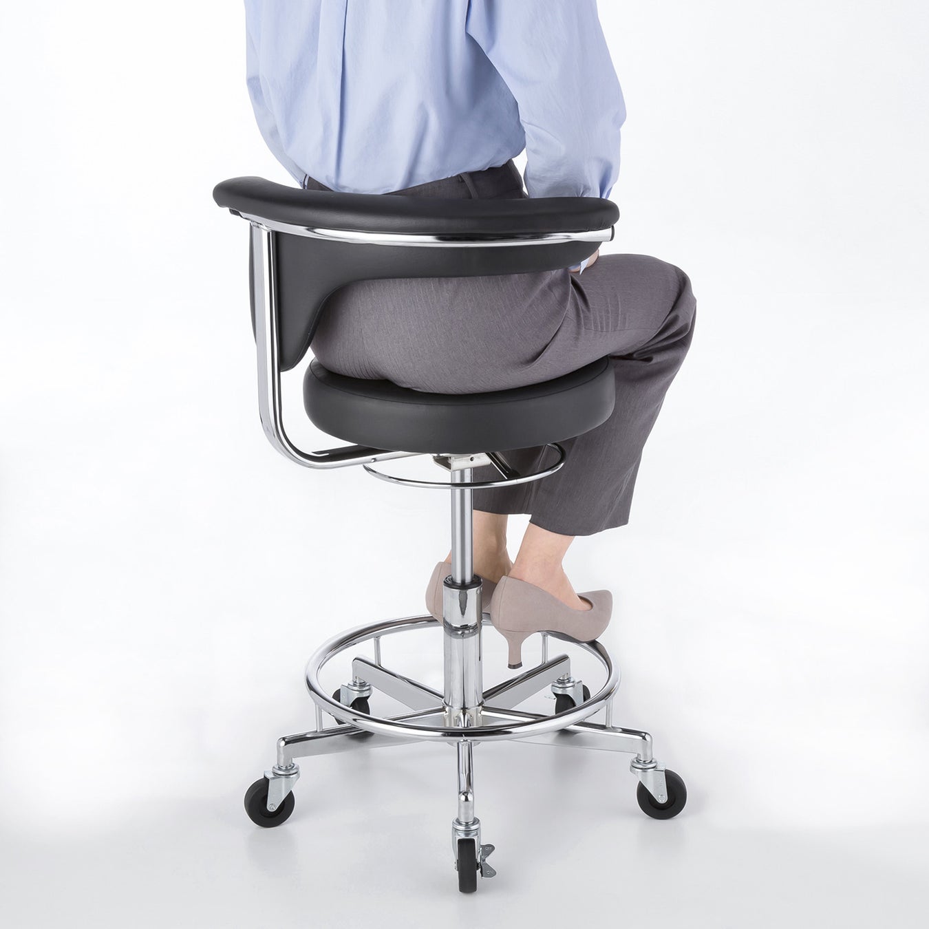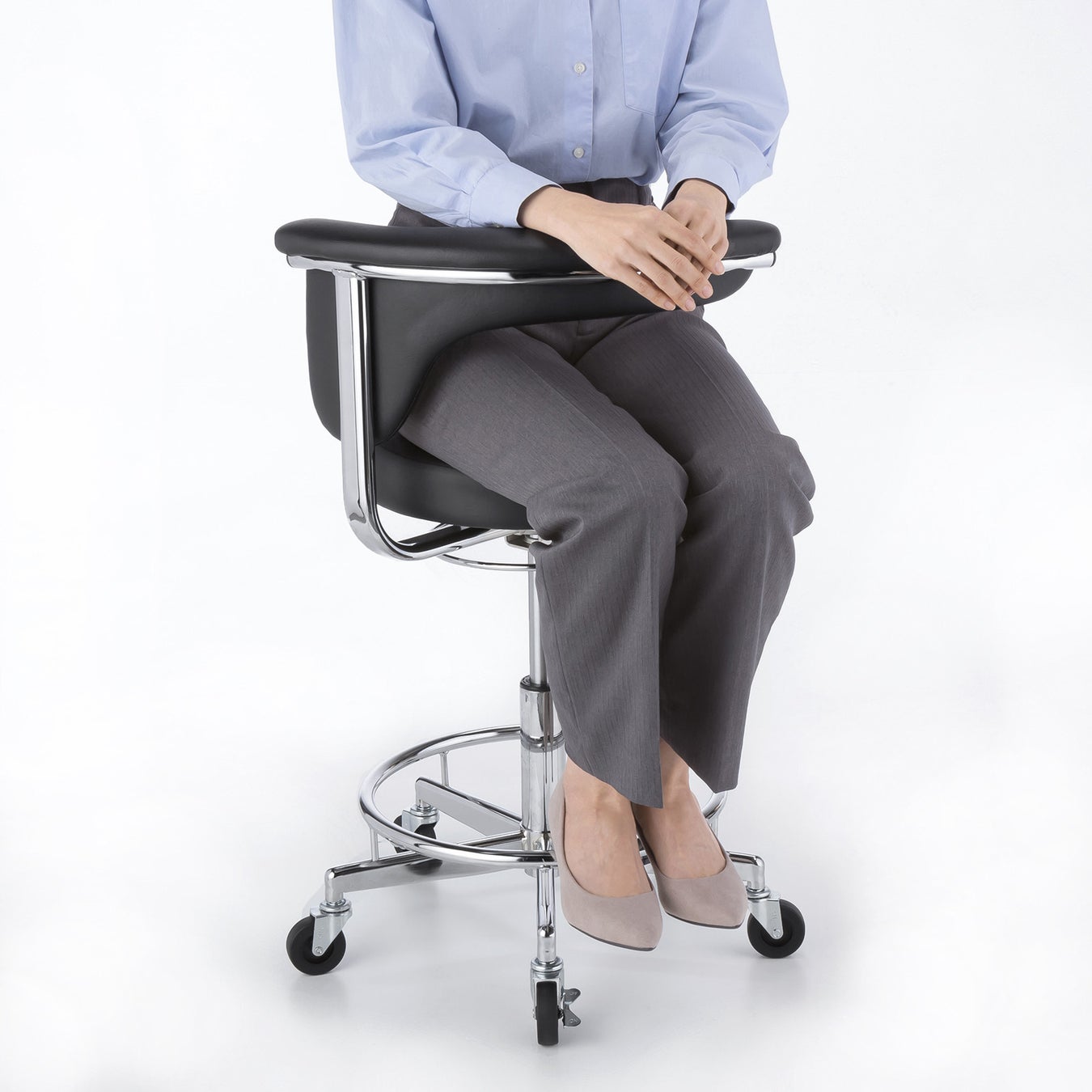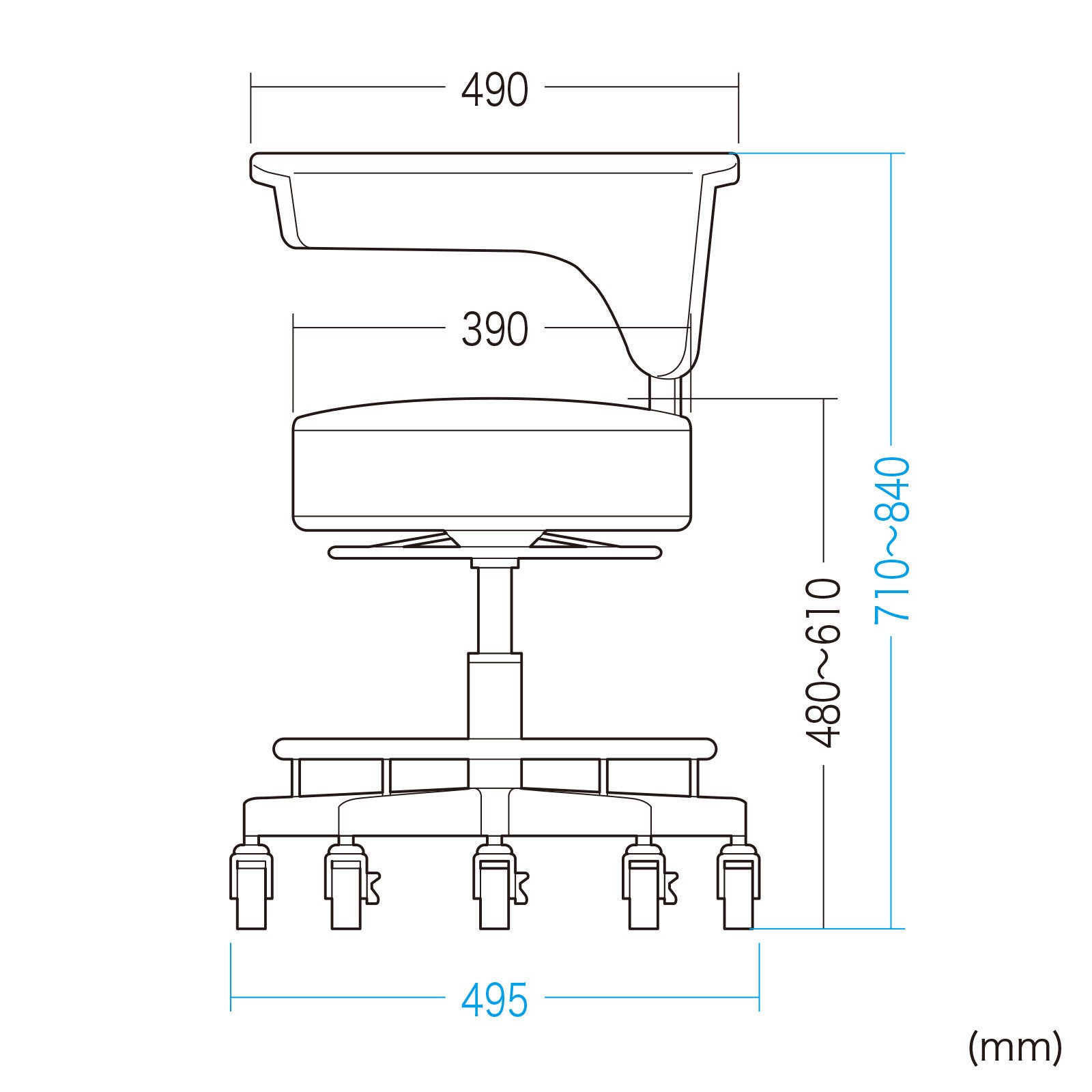 座面は最低約470mmに設定でき、小柄な方でも足が床に着きやすくなります。また、最大は少し高めの約600mmに設定できるので、工場などの作業台との組み合わせにもおすすめです。