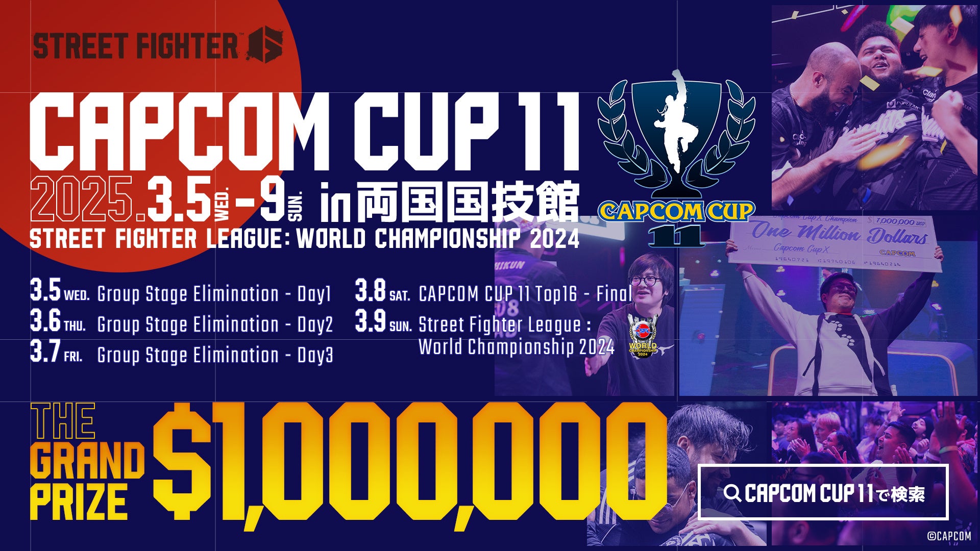 来シーズンの「CAPCOM CUP」情報が一部公開! 「CAPCOM CUP 11」、「ストリートファイターリーグ: ワールドチャンピオンシップ 2024」優勝選手は「CAPCOM CUP 12」出場権を獲得!