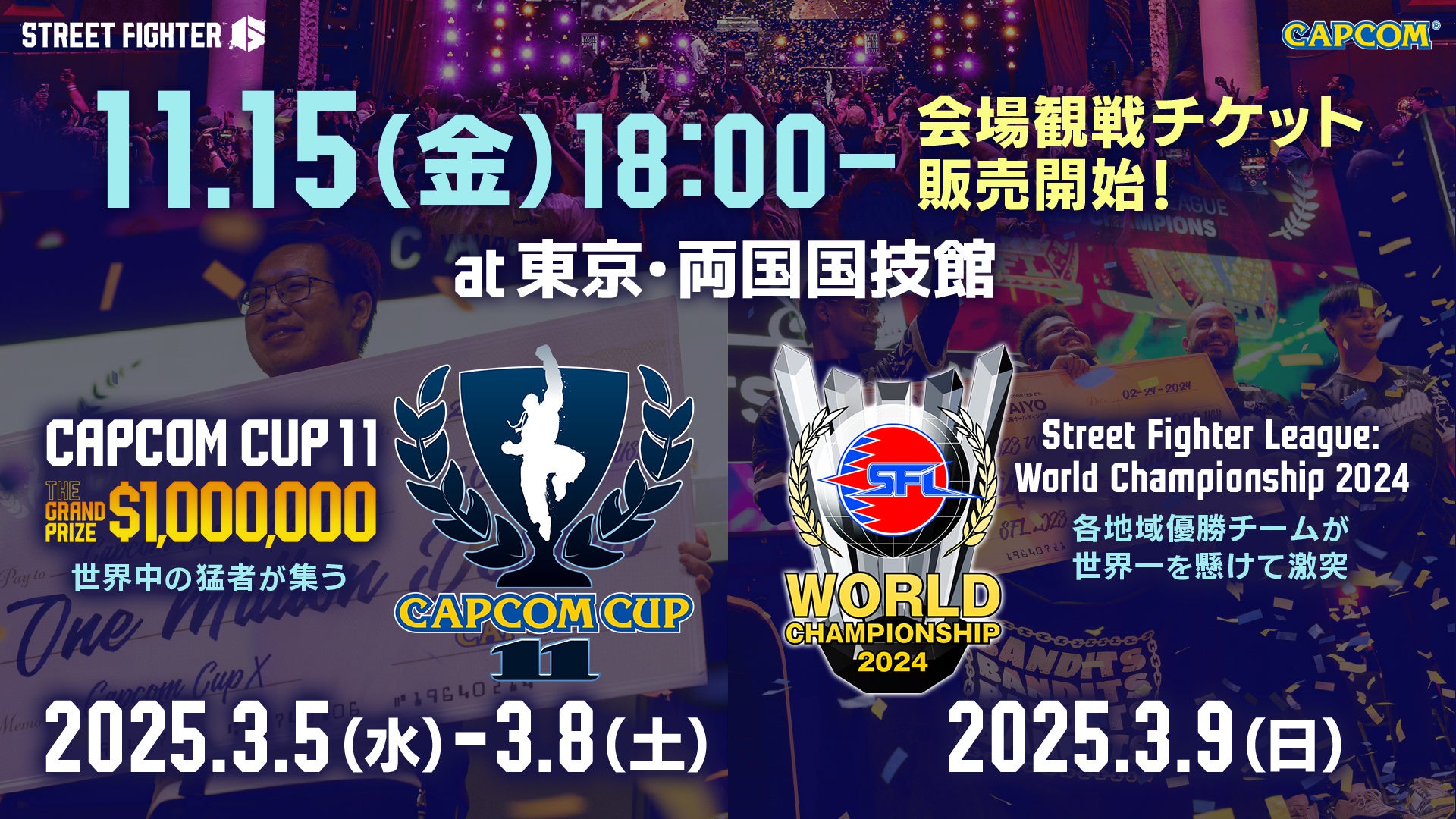 「CAPCOM CUP 11」、「ストリートファイターリーグ: ワールドチャンピオンシップ 2024」会場観戦チケットは「イープラス」、「イーカプコン」にて日本時間11月15日(金)18:00より販売開始!