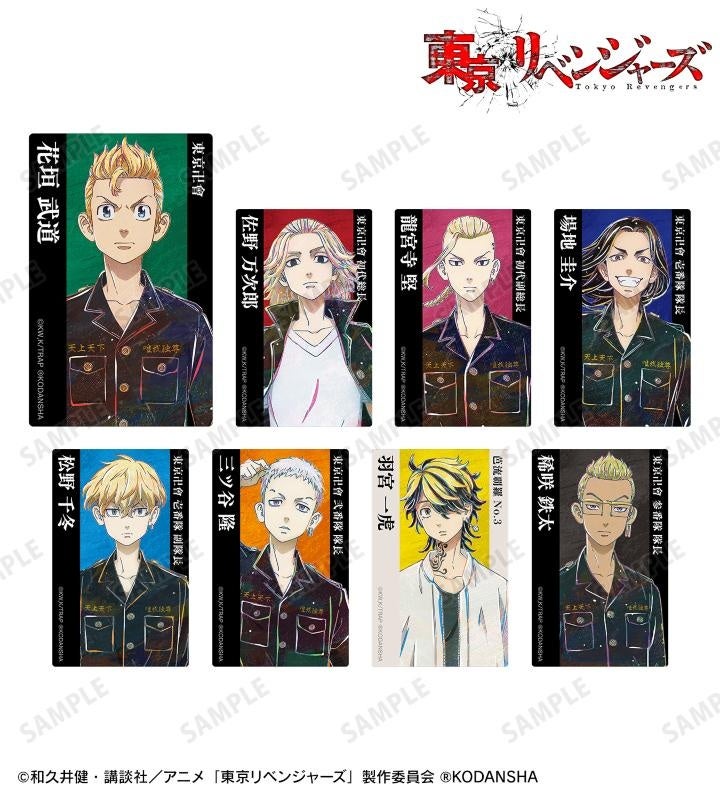 種類 :全8種(花垣 武道、佐野 万次郎、龍宮寺 堅、場地 圭介、松野 千冬、三ツ谷 隆、羽宮 一虎、稀咲 鉄太)