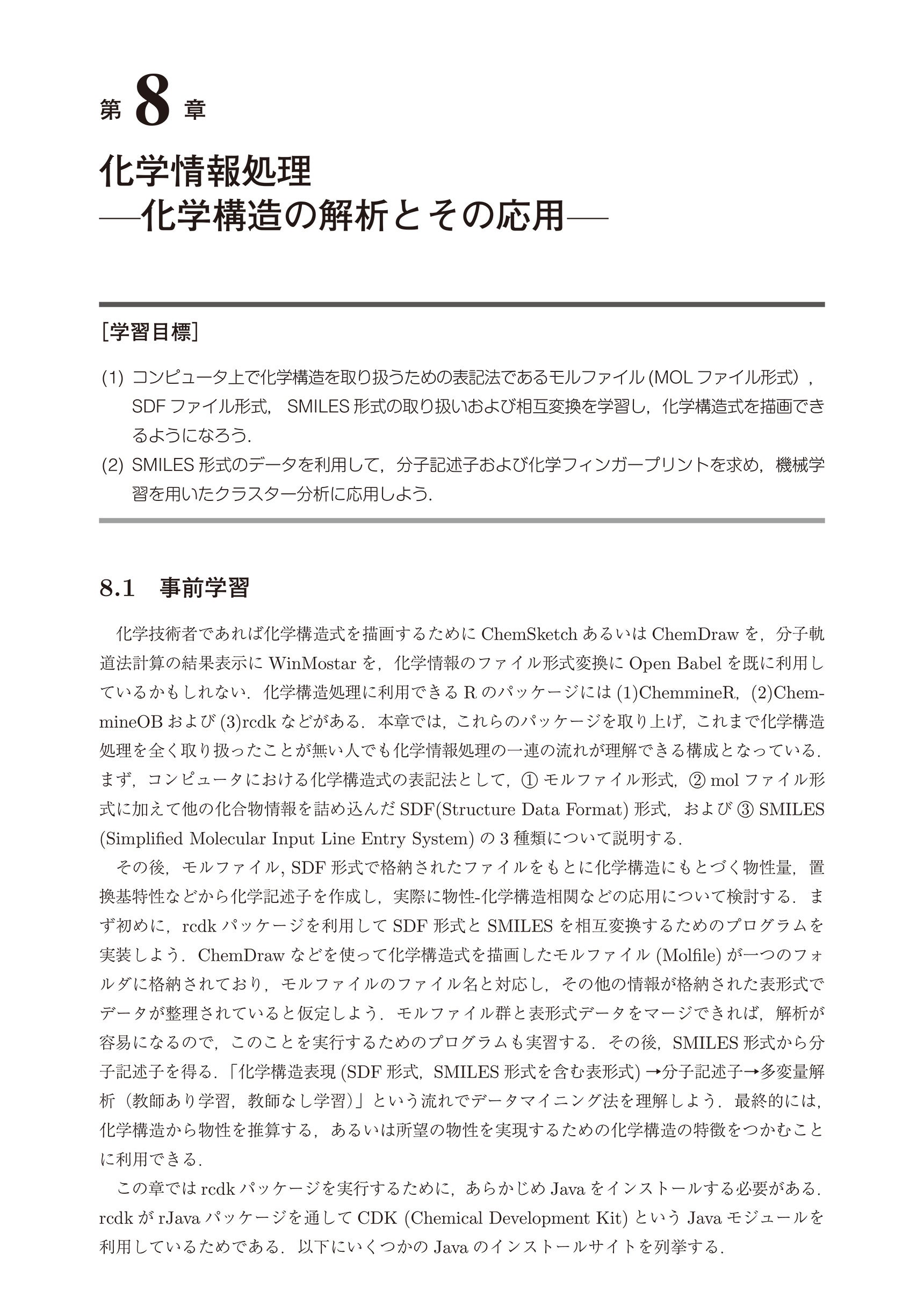 本書は新化学技術推進協会で開催されている「化学×デジタル人材育成講座」の講義資料を基に、ものづくりの現場において役立つRプログラミングを習得することを目指して構成されています。